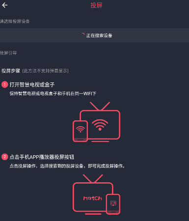 4、系统会自动扫描同网络环境下的智能设备,若未发现目标电视请检查设备是否连接相同WiFi网络。