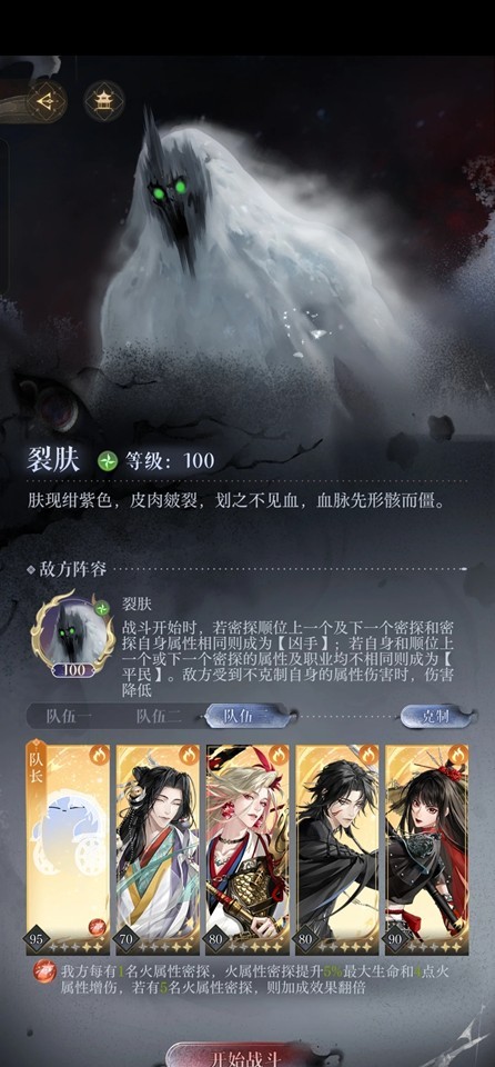 殍髑(火):有张鲁就是软柿子,没张鲁很难打。需要三个同属性密探站一起,按机制介绍是用三水队打,但是这三个水系中行动次数最多的一个仅有7次行动机会。