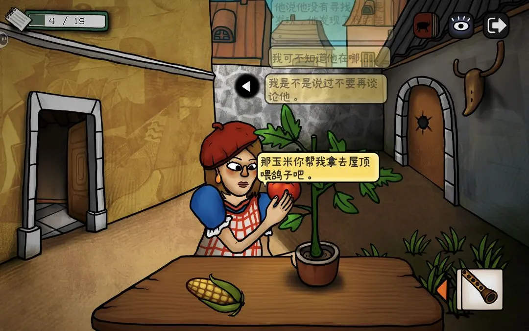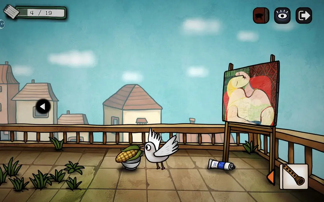 17、去屋顶喂鸽子,捡起蓝颜料,点击5次鸽子,解锁【和平鸽不平和】成就