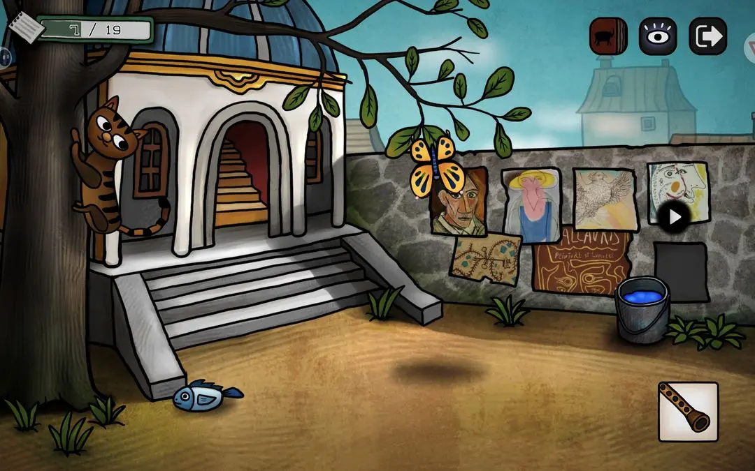 27、回到剧院大门口,用蝴蝶吸引小猫,得到鱼