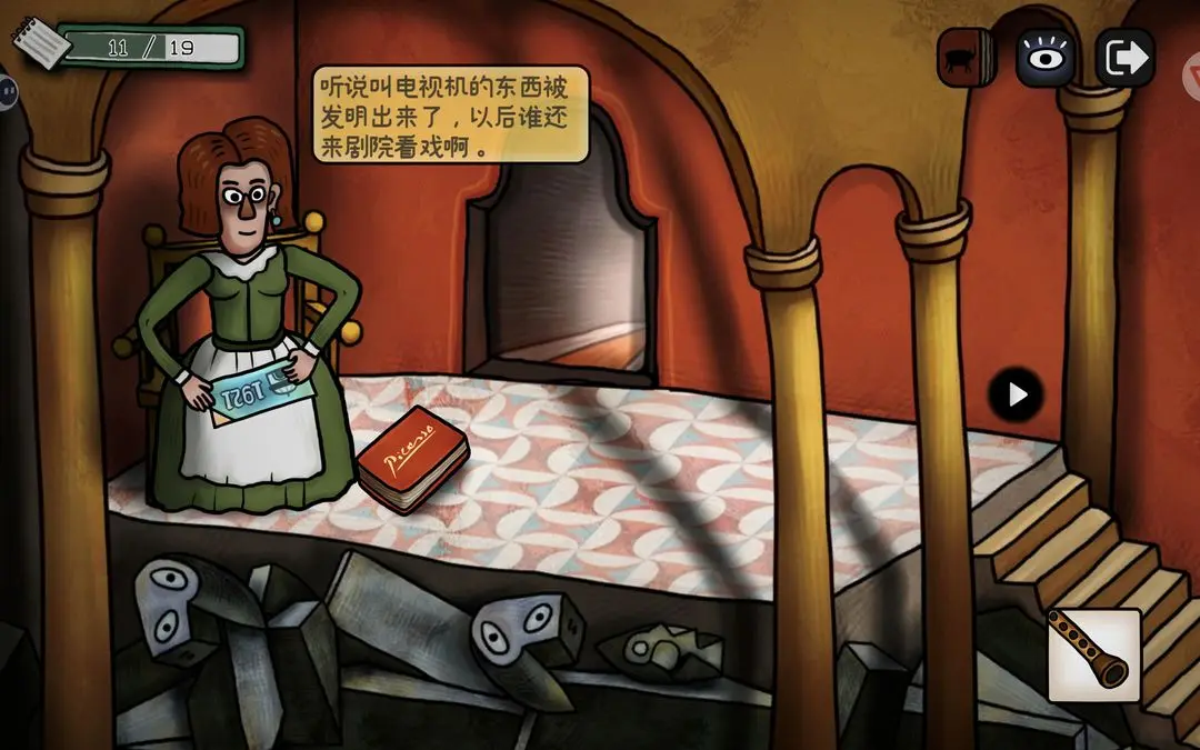 34、回剧院,乐队开始演奏,拿走橘子,注意右下角的时间11:25