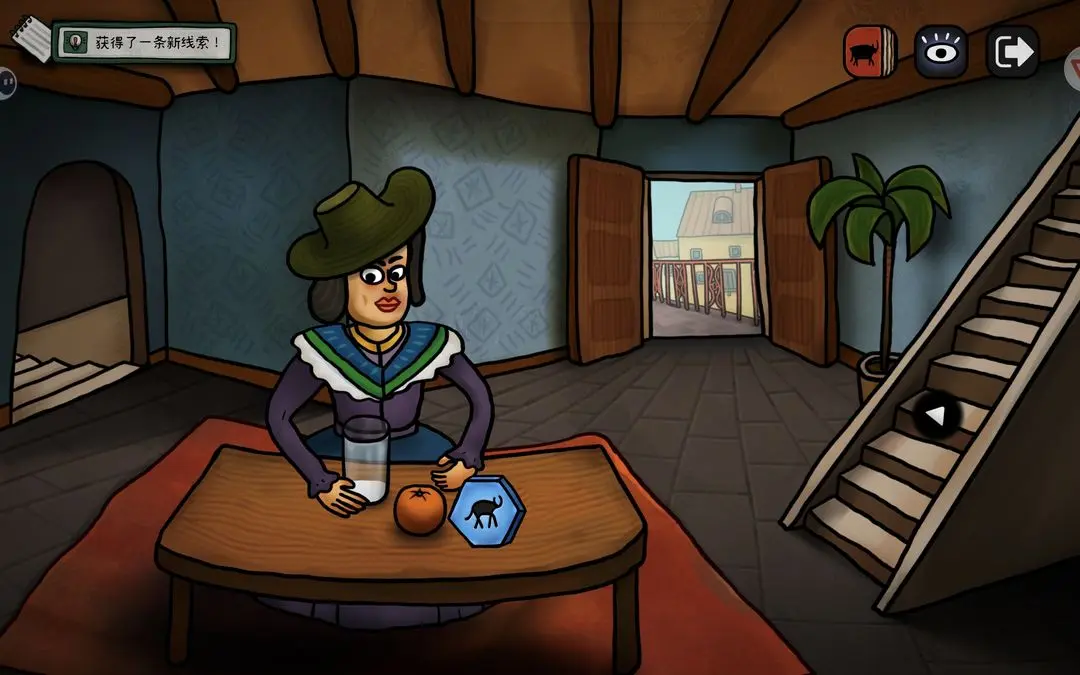 20、去院子里,点击玛丽身后的小路,再次看到公牛,把蜡笔给它