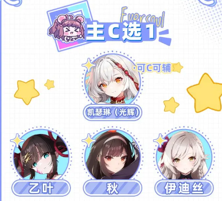 凯瑟琳(光辉)、乙叶、秋、伊迪丝,其中凯瑟琳(光辉)可C可辅