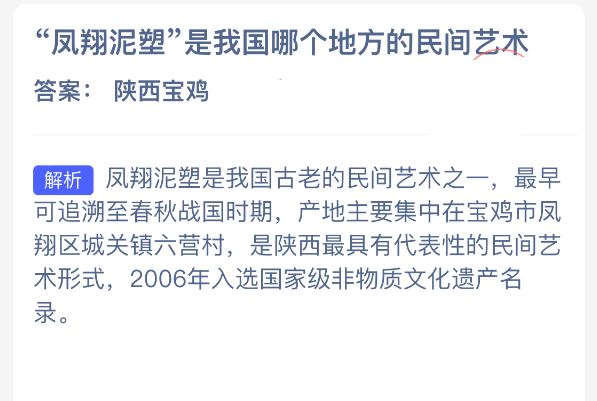 以上就是“凤翔泥塑”是我国哪个地方的民间艺术?支付宝蚂蚁新村最新答案2025年12月19日,更多精彩内容,请点击关注本站手游网更新!