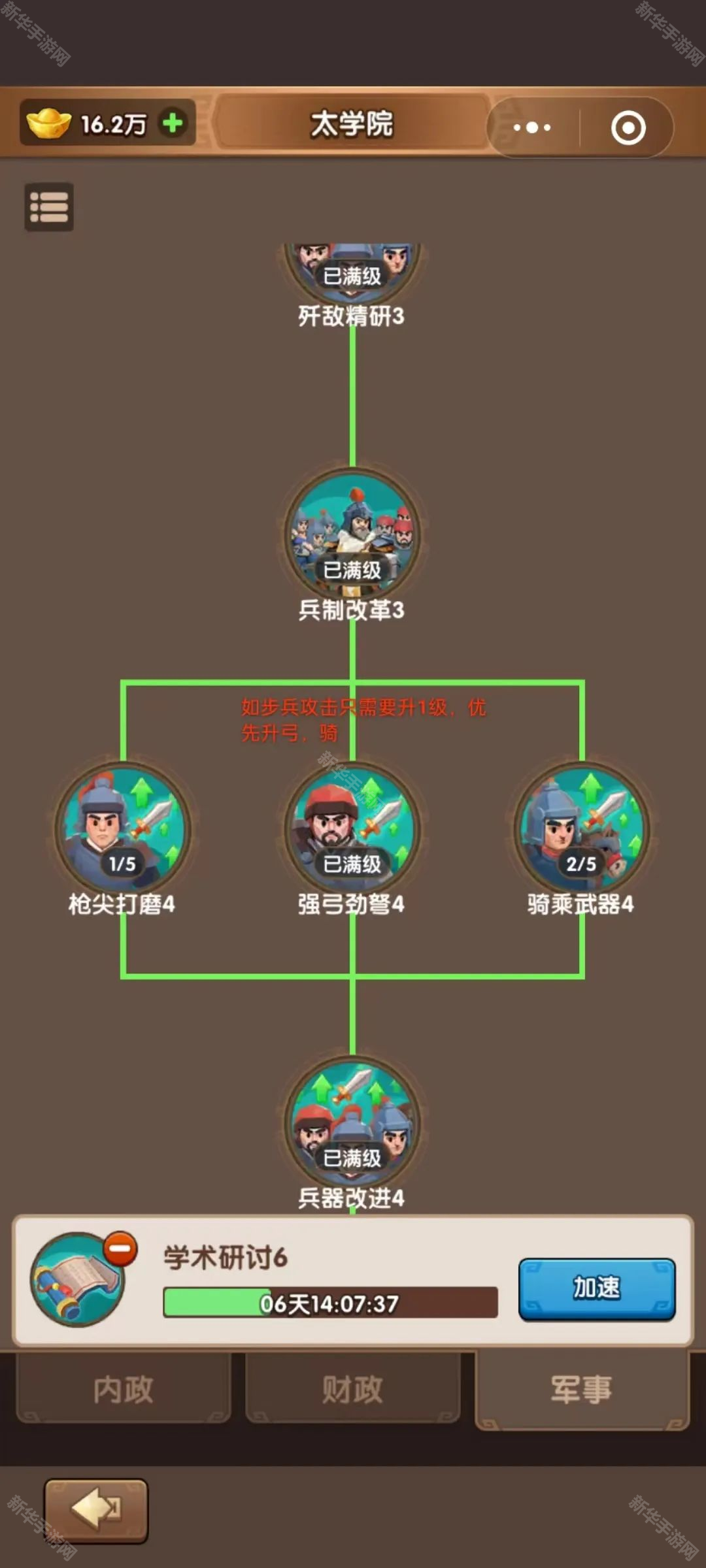 (后续等到军事到5级左右,回来点满内政。)