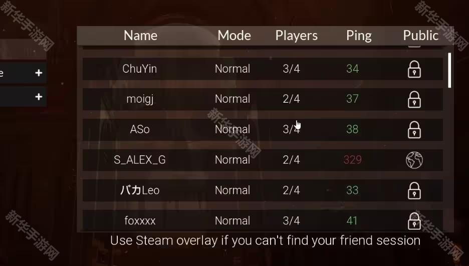 在这里你就可以看到其他玩家创建的房间,找到一个没有房间密码的加入即可。