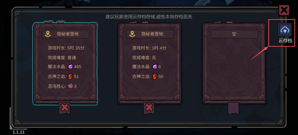 同时可以使用游戏内的云存档功能,将实时存档备份到云端或下载到本地,推荐多多使用确保存档永不丢失