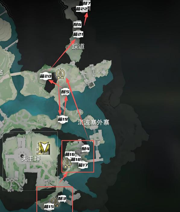 3、天王坪右上方区域,固定产出醚质7,同步解锁宝箱22。此处地势平缓,宝箱置于开阔台地边缘,周围无遮挡物,可视性强。
