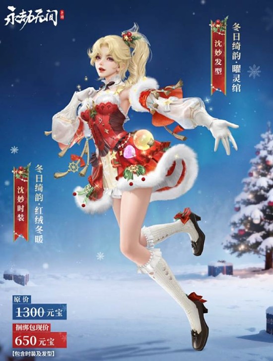 永劫无间手游官方公告:2025年12月31日5:00起至2026年1月15日5:00,商城限时上架「冬日绮韵」沈妙、顾清寒双旦外观,配套双戟皮肤同步6折出售,整套打包再降10%,错过档期恢复原价且不再直售。