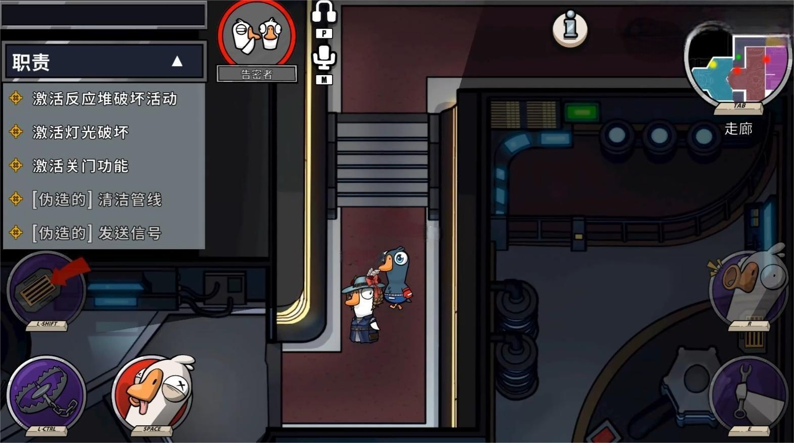 该角色定位偏向功能型输出与节奏掌控者。其核心优势在于非暴力干扰——无需靠近即可限制对手行动自由,尤其针对正在执行紧急任务(如修复反应堆、校准导航等)的鹅玩家效果显著。合理使用诬告技能,可大幅压缩敌方决策时间,降低其信息整合效率,从而为鸭子阵营争取主动权。在多人对局中,这一能力常成为扭转局势的关键变量。