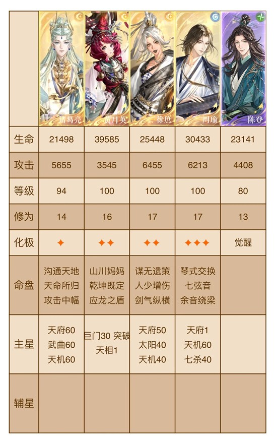 按如上配队可无视机制直接跟,命盘无需完全一致,黄月英必备乾坤应龙,诸葛亮必备沟通