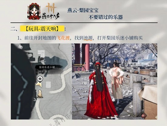 1、前往开封地图的飞花渡,找到池源,打开梨园乐迷小铺购买