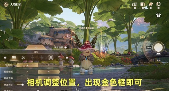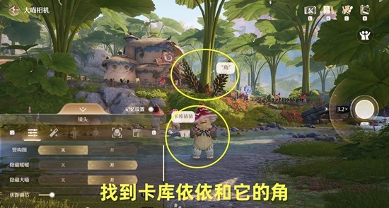 打开相机,找到卡库依依和角,通过调整相机,拍摄菇菇长角;