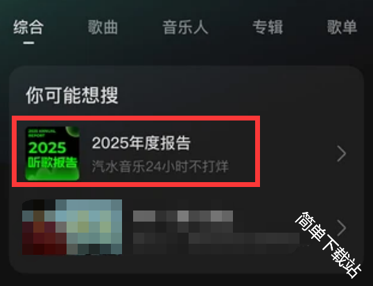 2、或是在汽水音乐中搜索2025年度报告都可进入