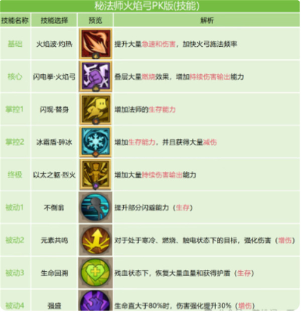 可适当配合持续伤害技能增加火焰压制能力