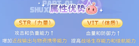 2、体质:血量和防御力上升,提高战场生存能力和续航能力。