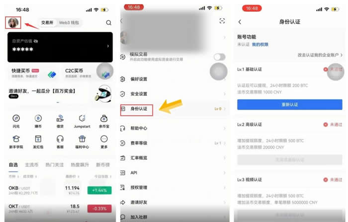 3.完成LV1-LV3分级身份认证流程
