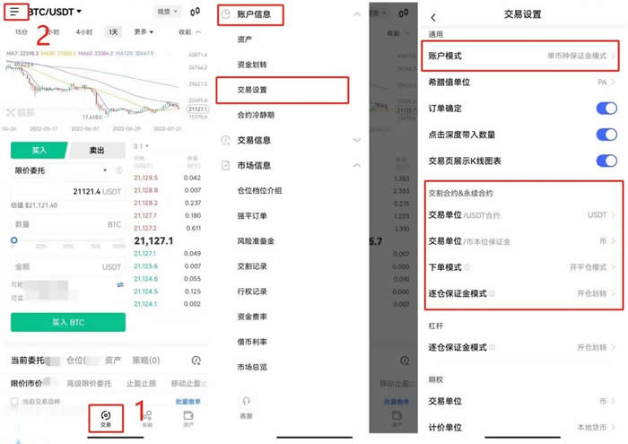 1.选择单币种或跨币种保证金模式