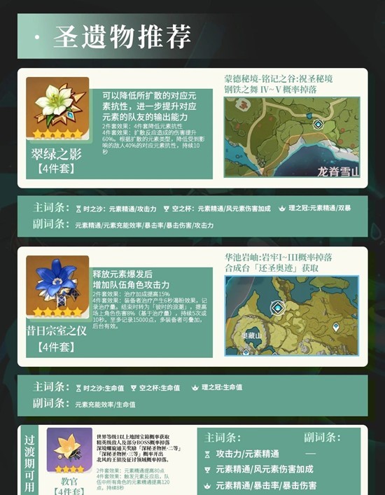 圣遗物: ①翠绿之影 ②宗室 ③教官(过渡期)