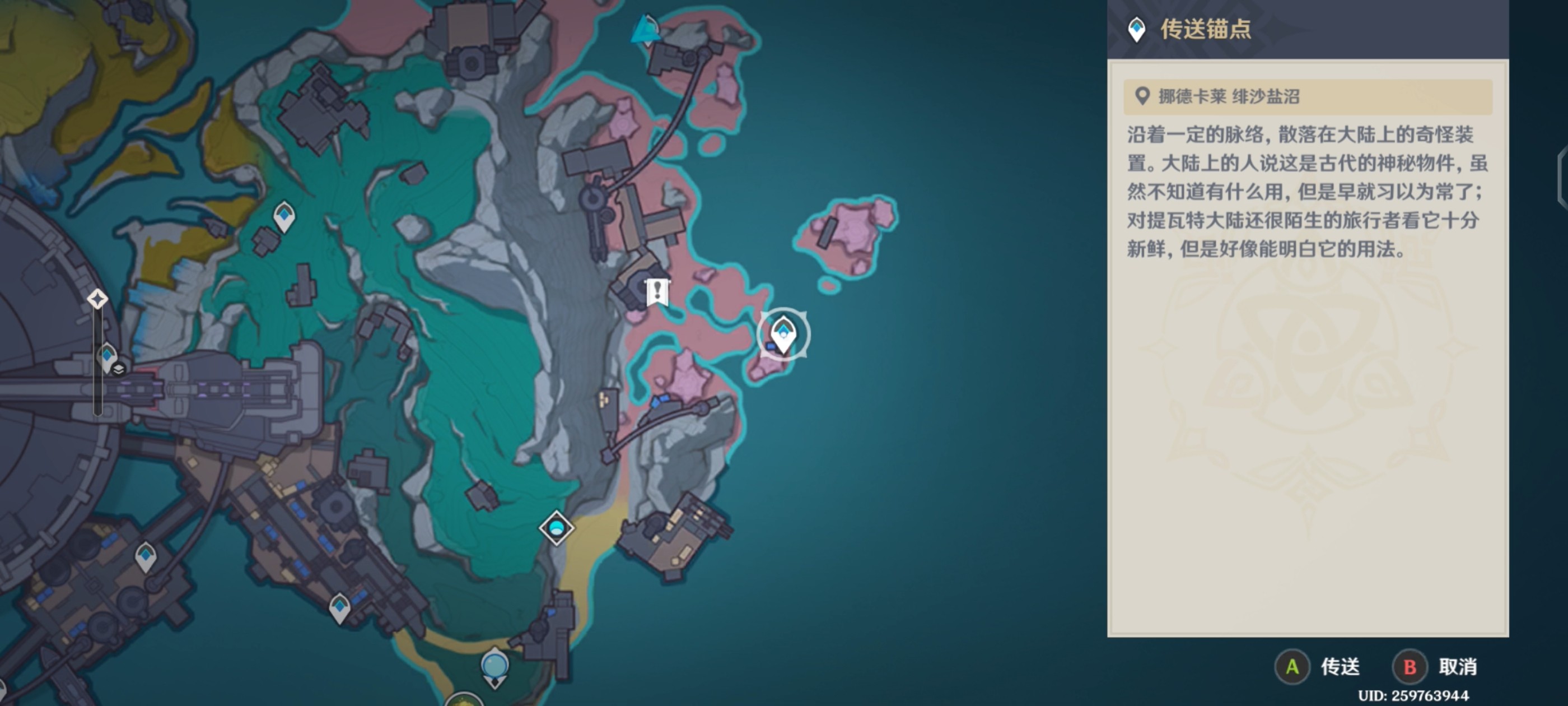 1.来到[挪德卡莱-月矩力试验设计局]右边的[绯沙盐沼];