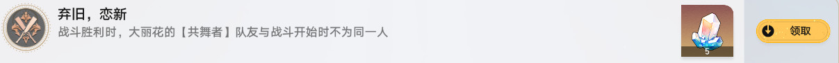 战斗胜利时,大丽花的[共舞者]队友与战斗开始时不为同一人,也就是[共舞者]需要至少切换一次