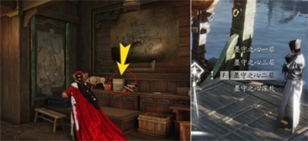通过鸦的房间密道,进入密室里,进门右手边拾取,传到沦波坊,偷听宋源一和夜非之说话,完成追溯