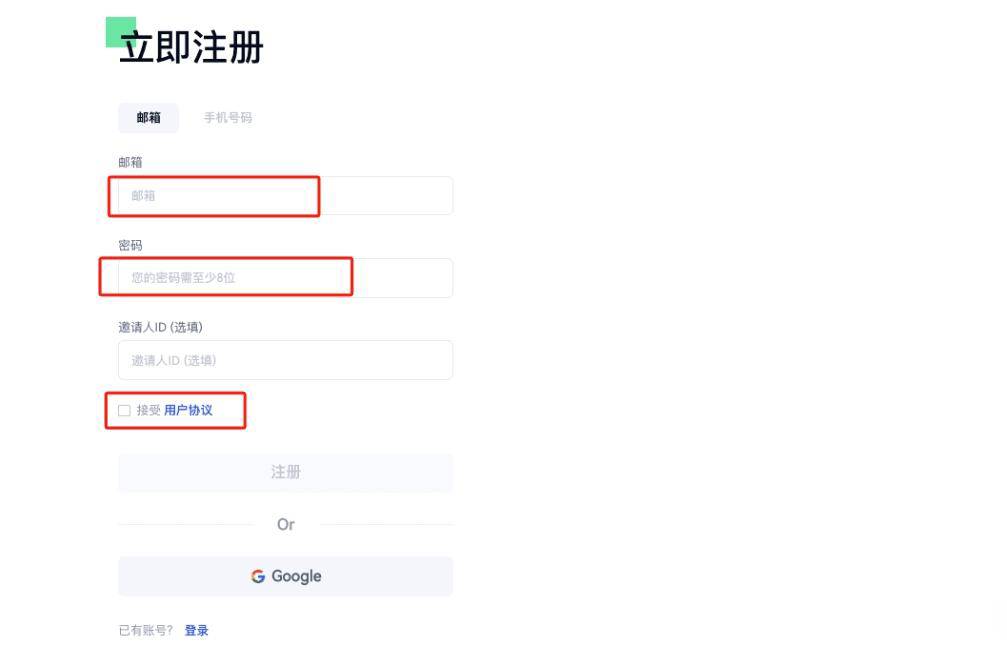 2. 填写邮箱、密码等基本信息,勾选用户协议后完成注册