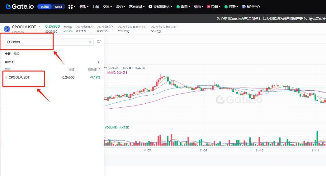 目前芝麻开门(Gate.io)、库币(KuCoin)等主流交易所均支持CPOOL币交易,以下以芝麻开门为例演示具体操作步骤: