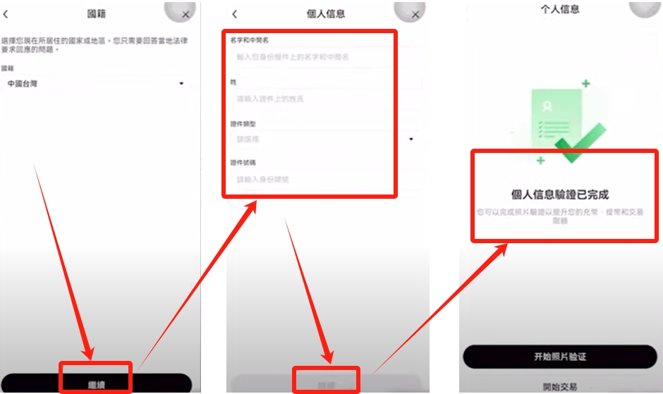 点击【继续】,填一下你的身份件件之类的,然后点击【继续】,这样KYC1就完成了。