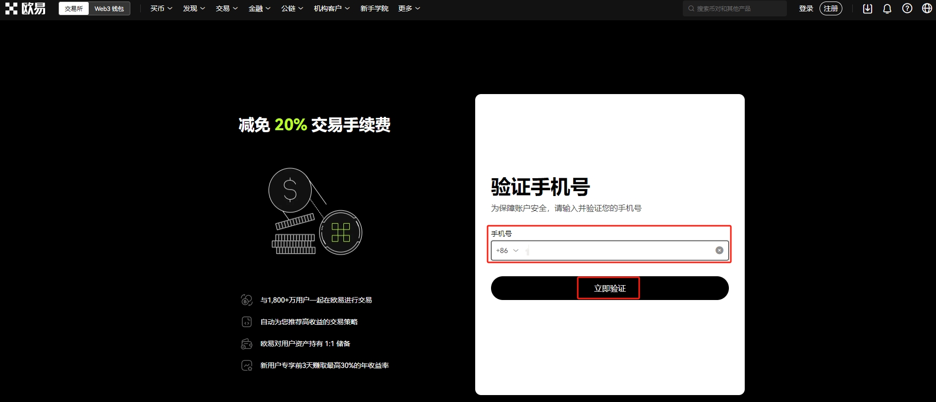 输入自己的手机号码,点击【立即验证】。