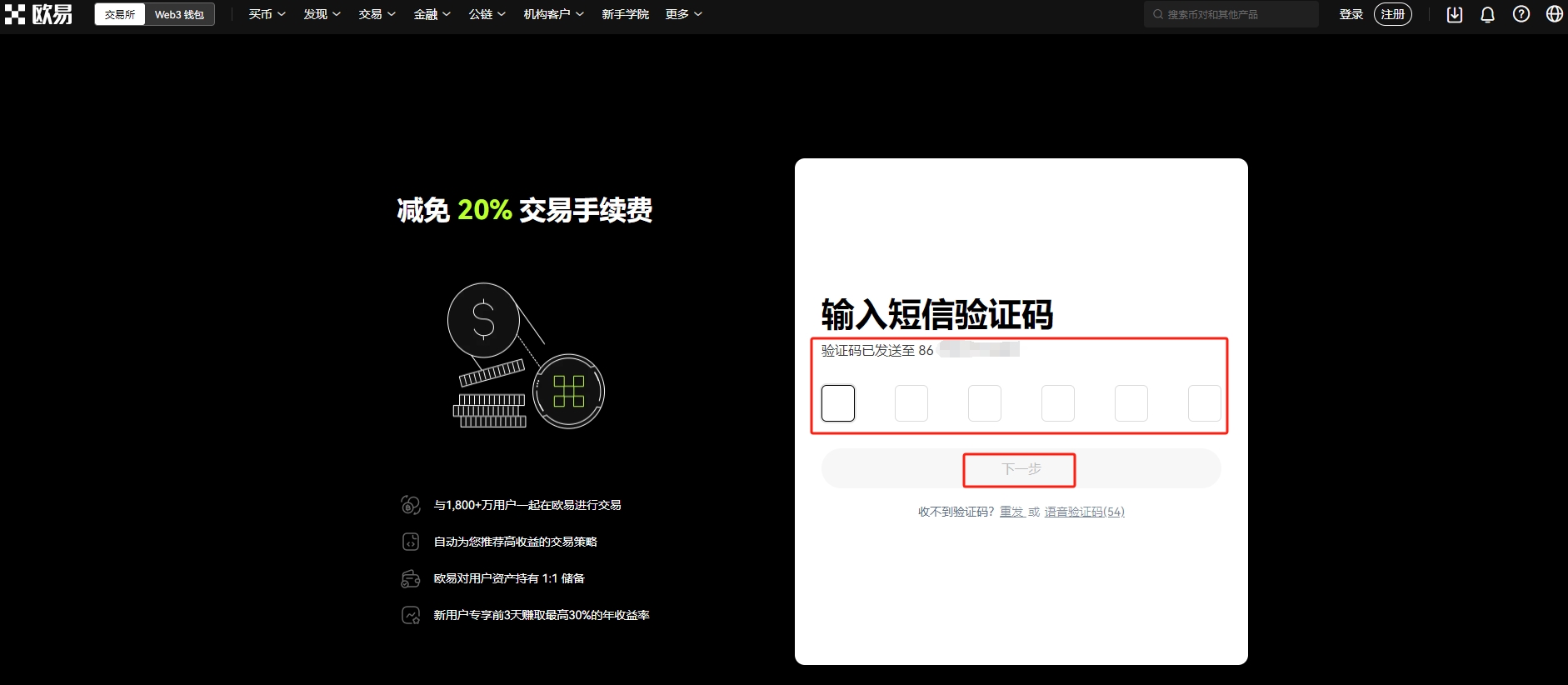 输入手机号验证码,点击【下一步】。