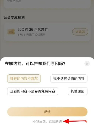 确认解约时选择"不想反馈,直接解约"即可完成操作。