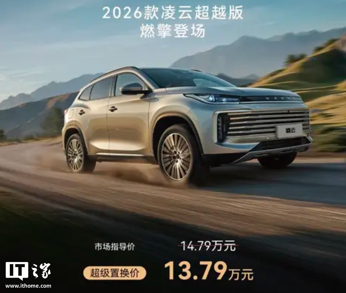 1 月 3 日消息,奇瑞汽车宣布旗下 2026 款星途凌云 300T 两驱超越版上市,新车型定位于全系最新入门版本,指导价 14.79 万元,超级置换价 13.79 万元(限时权益截至 2026 年 1 月 31 日 24:00 前)。