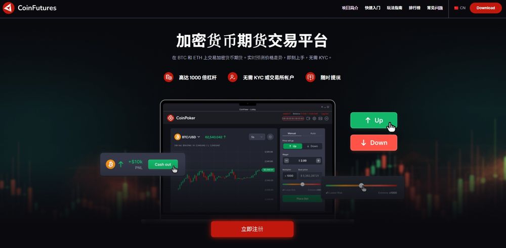 CoinFutures采用革命性价格预测模式,支持BTC、ETH等7大主流币种的千倍杠杆交易。其独创的无实体持仓系统通过算法实时匹配K线走势,用户仅需判断涨跌方向即可完成交易。平台提供双模操作:自动模式下可预设止盈止损点位,手动模式则赋予实时平仓的灵活性。