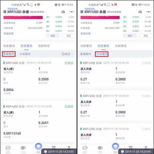 点击"合约-币本位合约"选择开仓方式,系统提供限价、市价和计划委托三种模式。以XRP/USD为例,设置杠杆倍数、价格及数量后即可提交委托。
