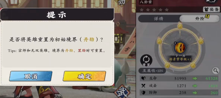 在《武道风云》这款以传统中式武学为内核的策略格斗手游中,角色成长并非线性堆叠,而是一个动态演进的过程。随着玩家持续投入资源进行角色培养与阶位突破,角色所处的武道境界会逐步攀升——从初入江湖的丹劲之境,到登堂入室的罡劲之境,每一步跃迁都直接影响其战力表现与技能释放逻辑。当阵容规模扩大、高阶角色陆续登场时,原有养成路径可能不再适配当前战术需求,此时“境界重置”便成为关键的资源再配置手段。