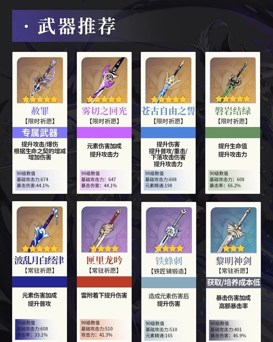 武器圣遗物推荐: