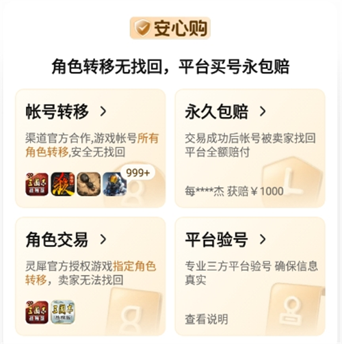 账号交易安全是用户最关切的核心问题。由于《原神》账号普遍绑定手机号、邮箱及第三方登录凭证,存在找回风险与盗号隐患,尤其对高价值账号而言,资金损失风险显著。推出“安心购”保障服务,针对符合条件的账号提供永久性交易赔付承诺,涵盖账号被恶意找回、非本人操作导致的异常冻结等场景,从协议层面强化买卖双方权益保障,降低交易不确定性。
