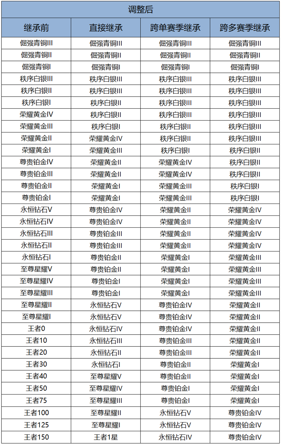 王者荣耀s42赛季段位继承表一览