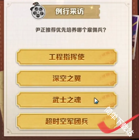 10、尹正推荐优先培养哪个雇佣兵?