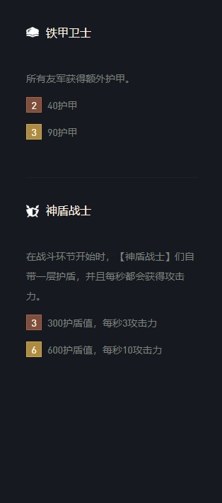 这个阵容前期特别强势,神盾特比的肉,再加上疯狂拉人口走的连胜,保证血量一直都在前面,大后期没有特别怕的阵容,当然天使除外,上分吃鸡首选阵容不容错过。