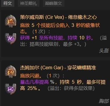 仲裁官持续时间为关键词条,保证闪避与技能循环的流畅度。