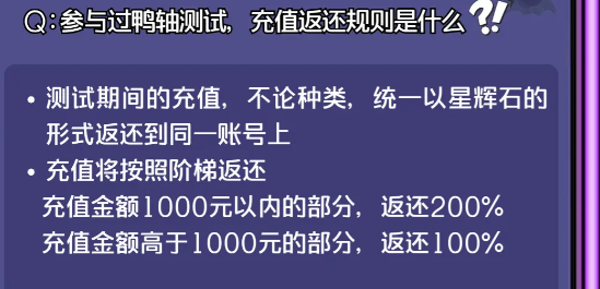 ·测试期间的充值,不论种类,统一以星辉石的形式返还到同一账号上