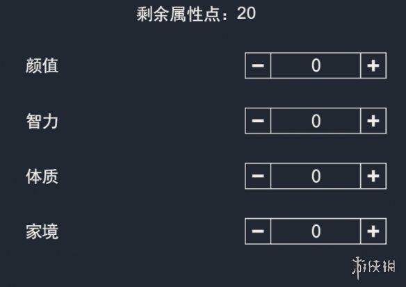 初始需分配20点基础属性值,涉及颜值、智力等四项关键指标