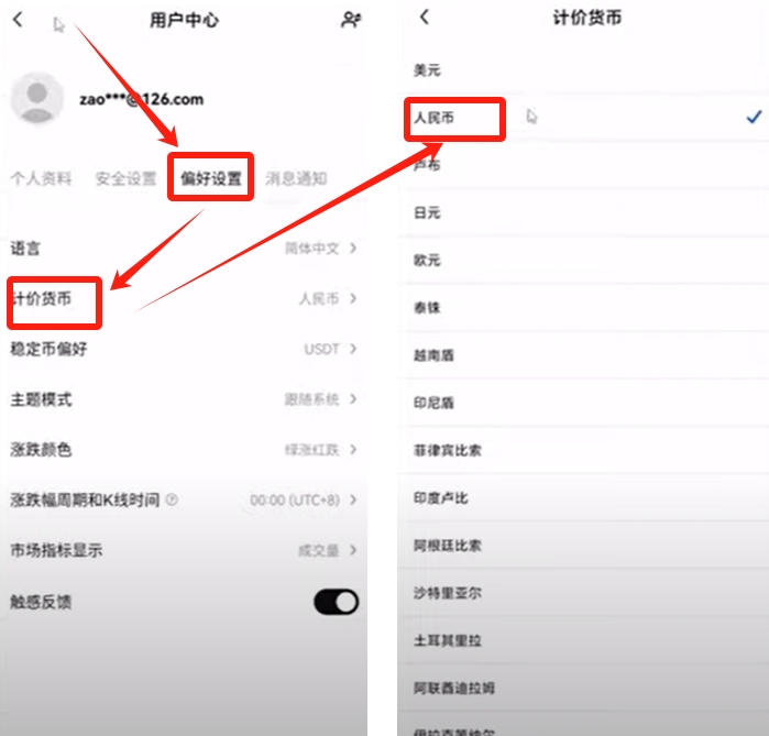 还有一个偏好设置,这里【计价货币】默认的是美元,大家改成软妹币就行了。