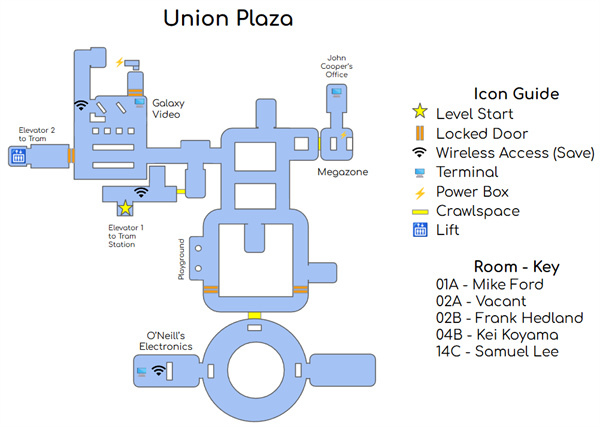 它们不是完全按比例排列,但有方向性,并且能与其他地图和区域连接。这些地图包括锁门和终端位置、区域名称和门禁卡位置,但略过了一些过渡地图。