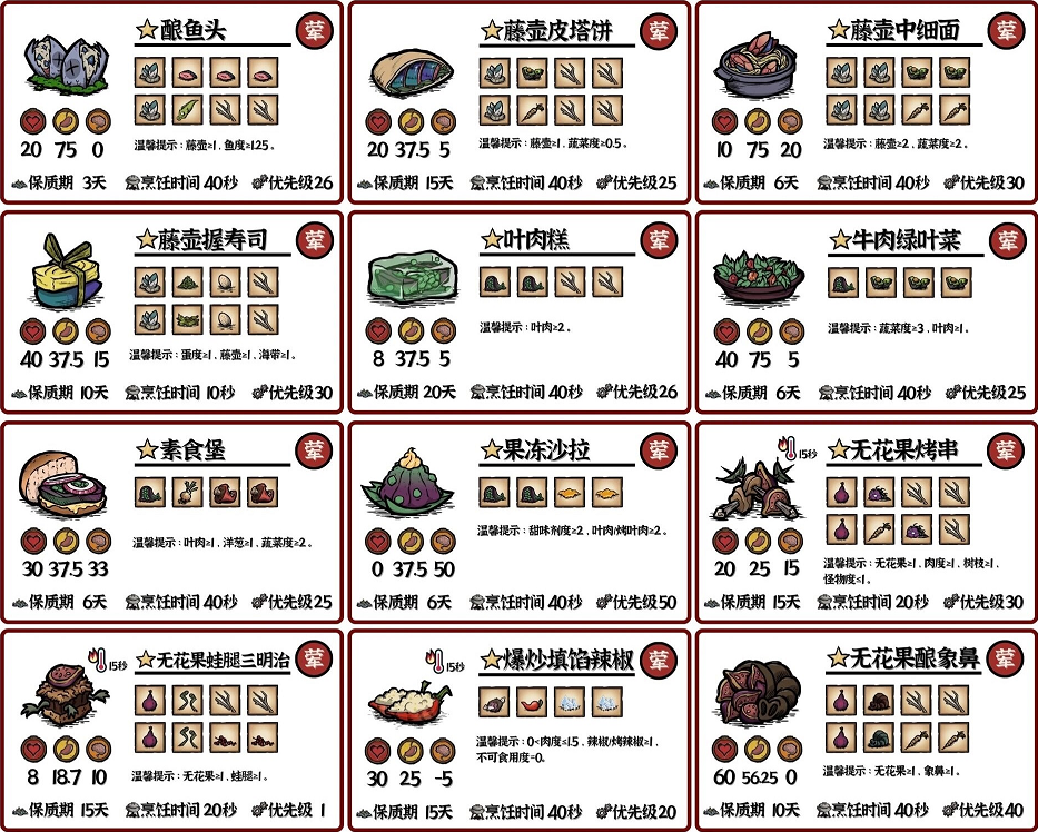 饥困荒野食谱大全