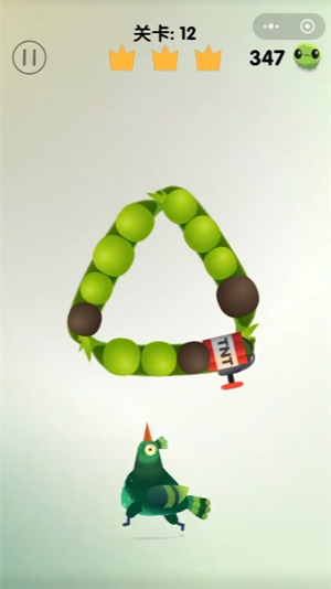 疯狂的鸽子到了第12关难度进一步的提升,豌豆荚的数量也增加了,这一关也有炸弹好好应用,躲避黑豆啄掉所有青豆吧,以下是第12关的通关技巧分享。