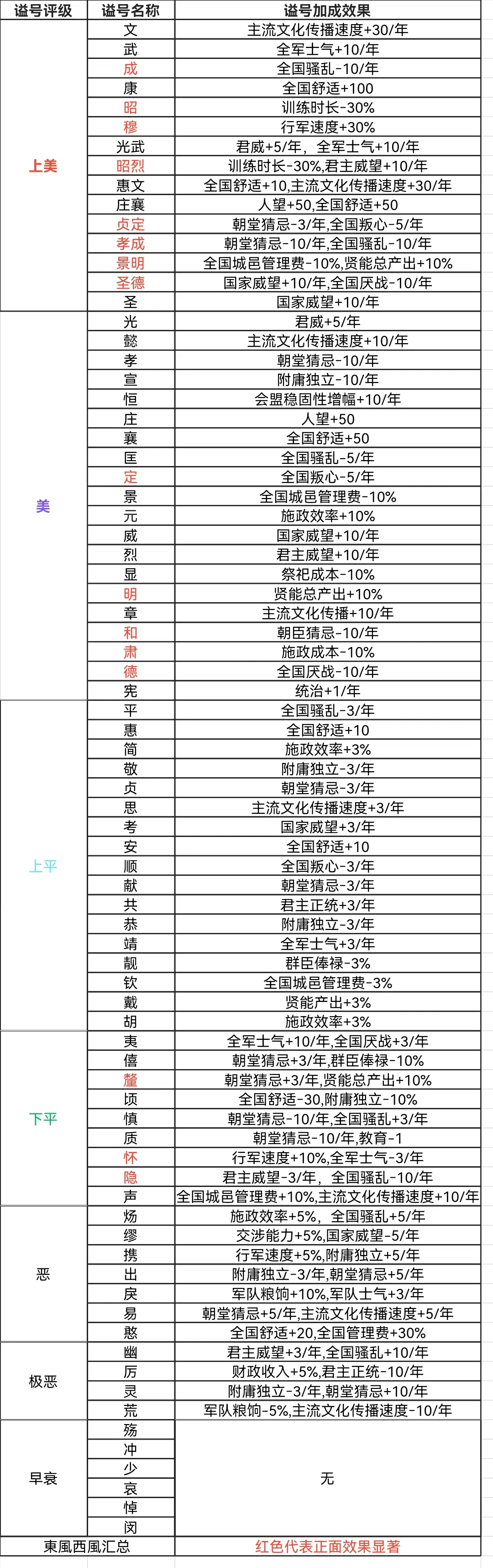 关于谥号的加成以及相应效果可参考下图: