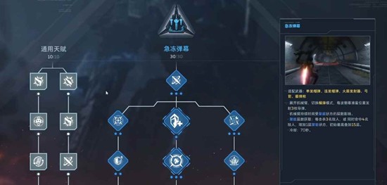 逆战未来的天赋系统主要是分为三块:激光、重机枪、轰炸三条独立树状路径。